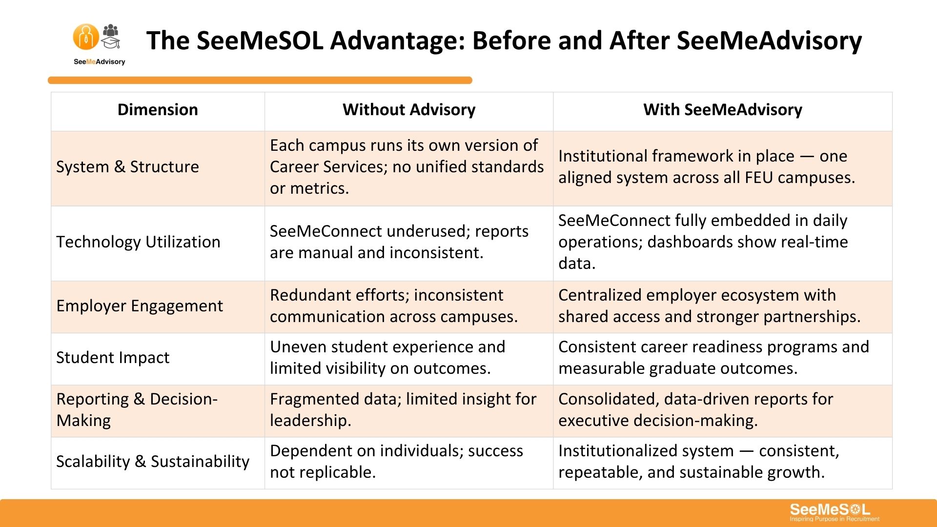 Leverage SeeMeConnect and other SeeMeSOL digital talent engagement solutions with our advisory network to deliver impact even with limited resources.
